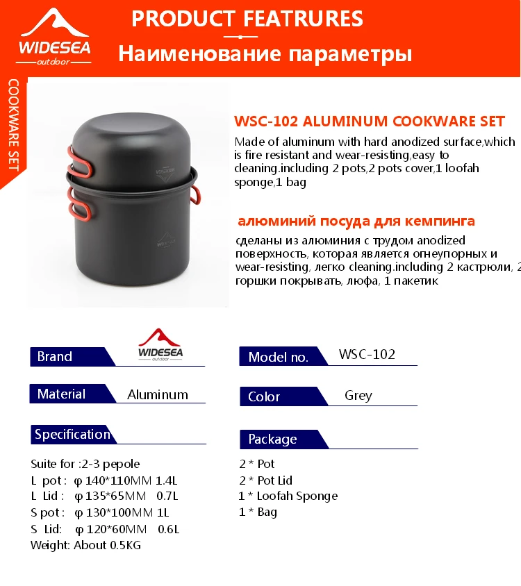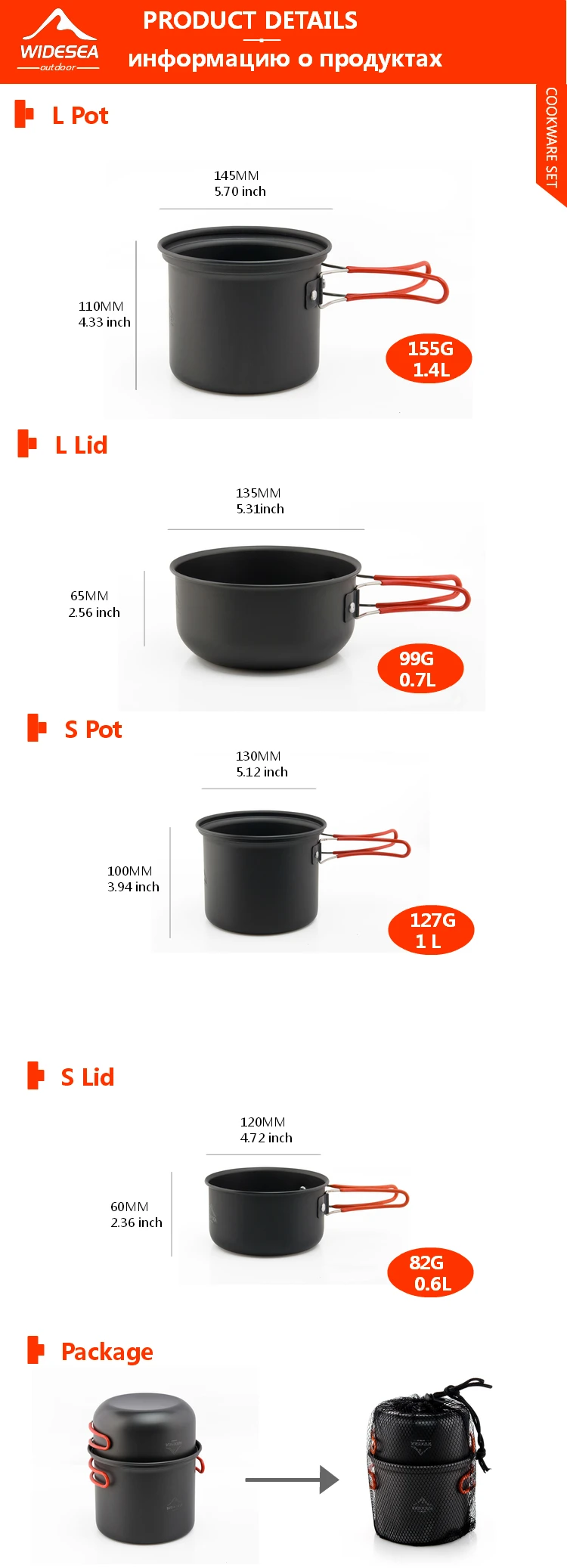 All the objects in this cooking set can be stored together in a mesh bag for convenient carry. And it contains room to carry other items like salt, stove, to keep your overall space consumption to a minimum.
